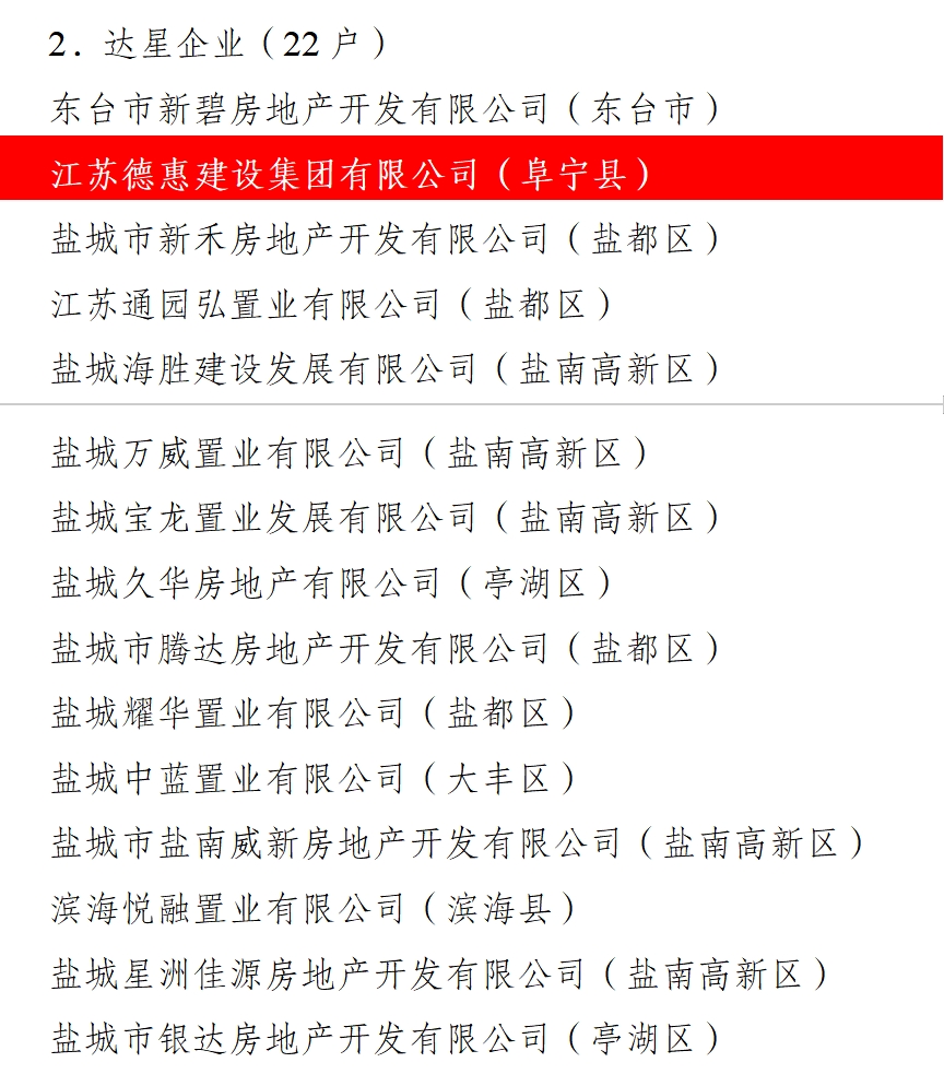 近日,中共鹽城市委辦公室公布了鹽城市2024年度星級企業(yè)認(rèn)定名單,江蘇晟功建設(shè)集團(tuán)有限公司獲評江蘇省鹽城市“爭星創(chuàng)優(yōu)”建筑業(yè)五星企業(yè)認(rèn)定;江蘇德惠建設(shè)集團(tuán)有限公司獲評房地產(chǎn)“達(dá)星企業(yè)”認(rèn)定。